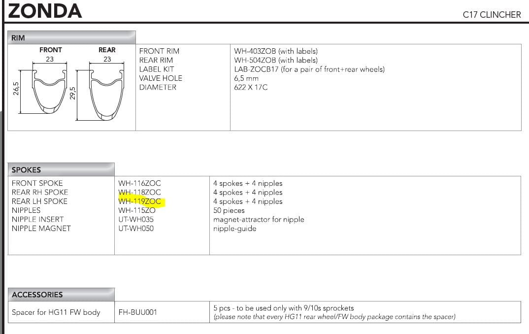 Campagnolo szprychy do Zonda C17 mini kit tył lewy