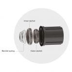 Piasty RS zostały całkowicie przeprojektowane w porównaniu z generacją SL. Są bardziej aerodynamiczne i lżejsze, co pozwoliło obniżyć całkowitą masę o 80 g. Tylna piasta posiada system dwuzapadkowy bębenka. Mniejsza zapadka znajduje się w bębenku, a większa wewnątrz kołnierza piasty dla lepszego przenoszenia siły na pedały. Konstrukcja piasty znacznie poprawia płynność pracy kół, co przekłada się na większą prędkość.