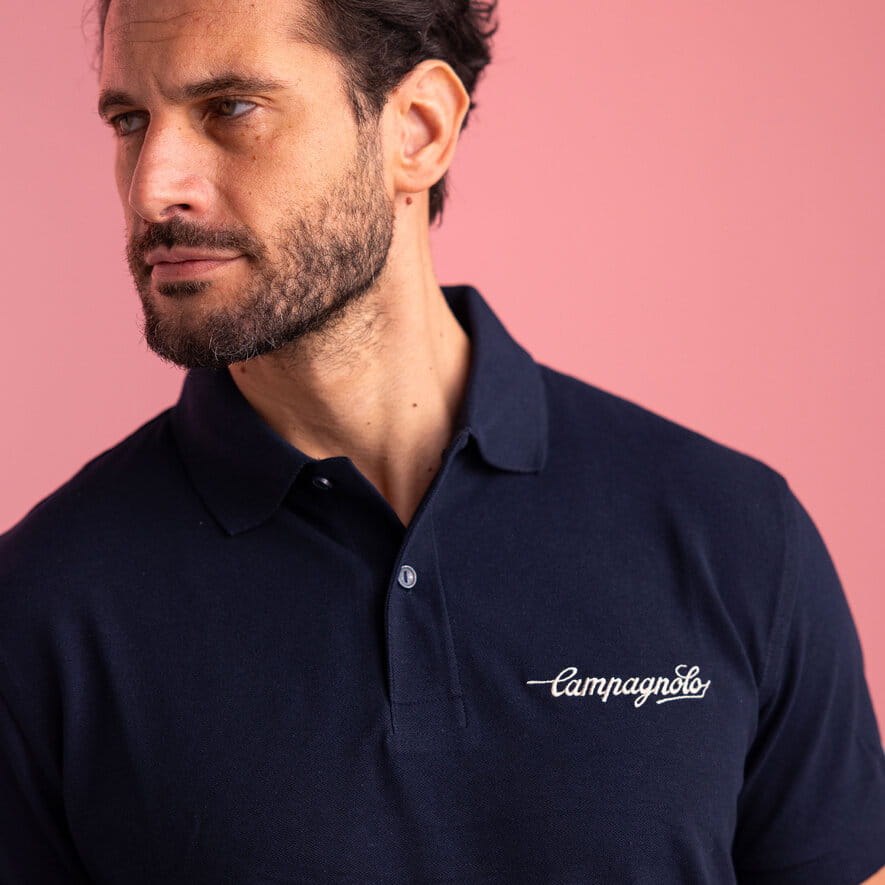 Klasyczna, łatwa w dopasowaniu koszulka polo z bawełny. Jest zapinana na dwa guziki i ma tradycyjne logo Campagnolo wyhaftowane po lewej stronie z przodu oraz logo ze skrzydełkami na lewym rękawie.