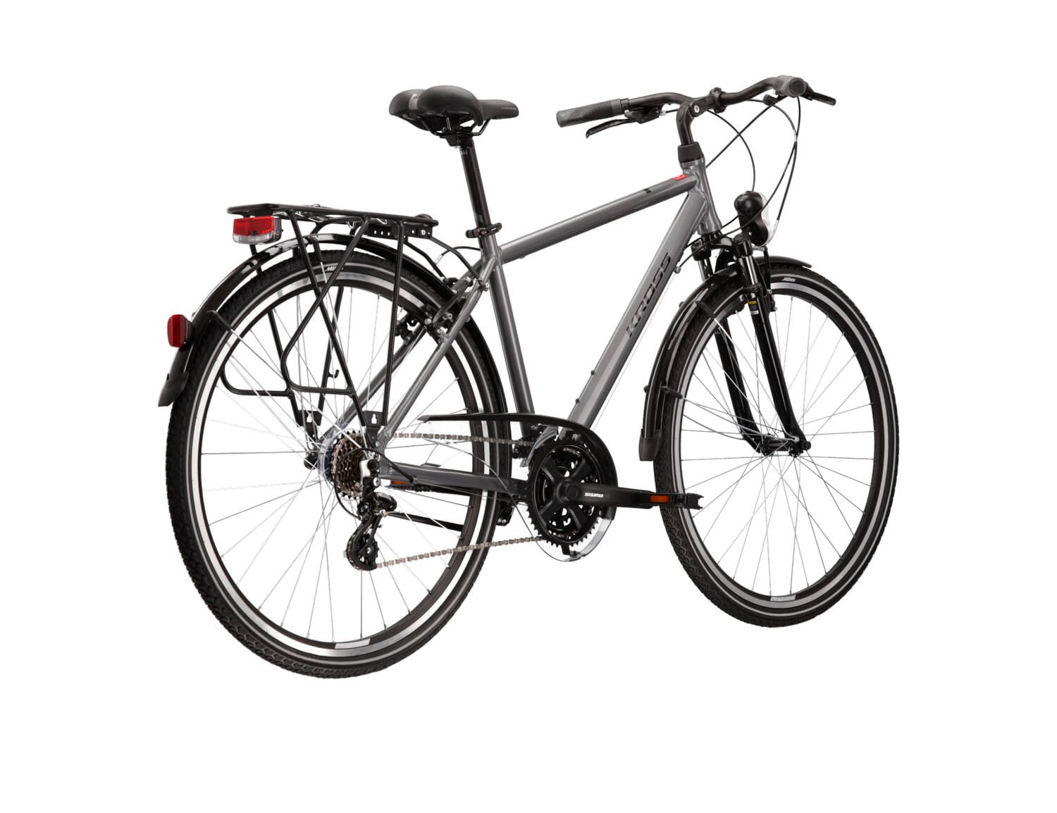 W Kross Trans 2.0 zamontowaliśmy hamulce V-brake, które zapewnią ci dużą siłę hamowania na asfalcie jak i na leśnej ścieżce. Opony o szerokości 1,5” pozwalają na stosowanie go w prawie każdych warunkach atmosferycznych i długą eksploatację. Ponadto zamontowaliśmy w naszym rowerze tylną przerzutkę ShimanoAltus M310, która jest łatwa w serwisowaniu.