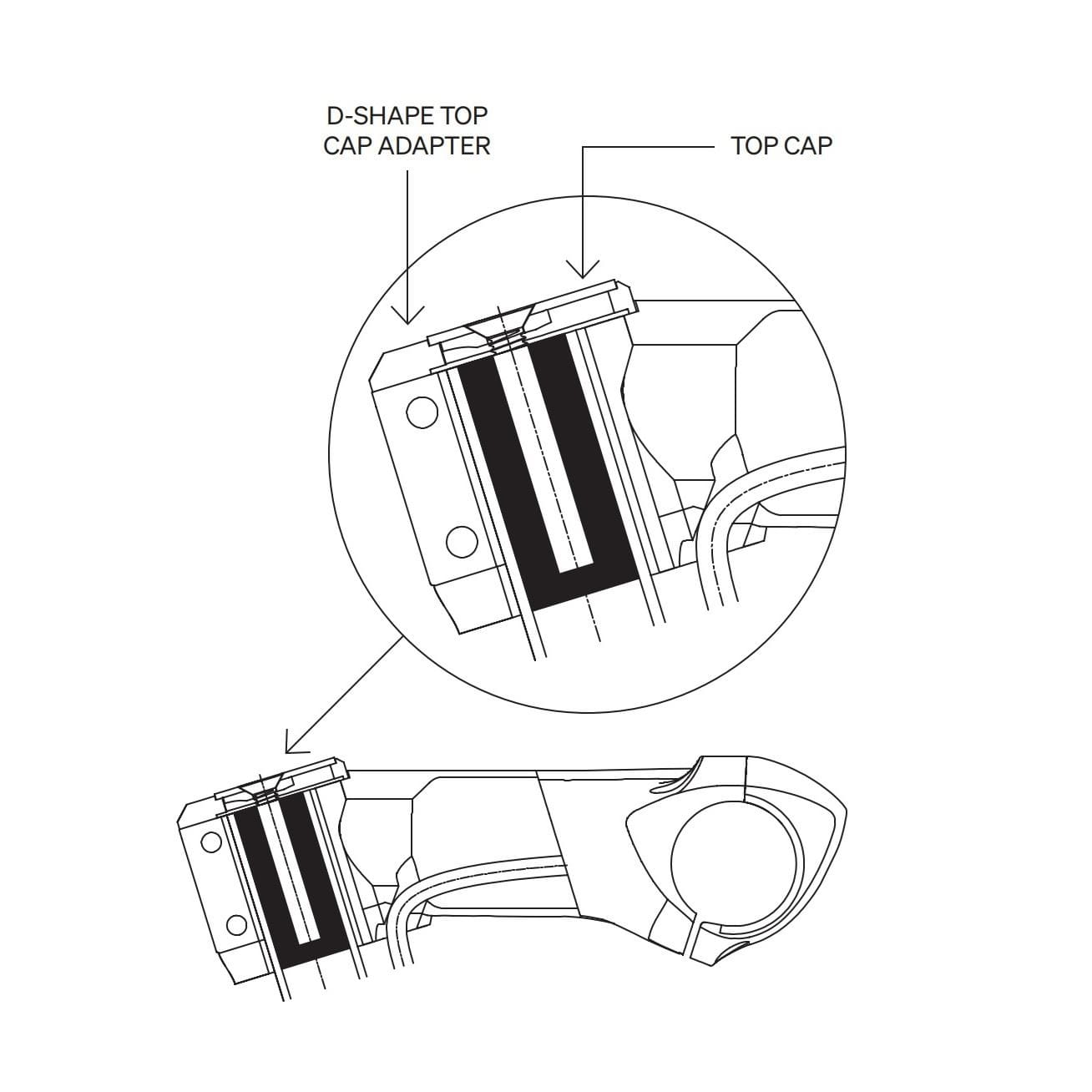 VINCI TOPCAP ADAPTER for D-SHAPE fork steerer, Nylon, Black